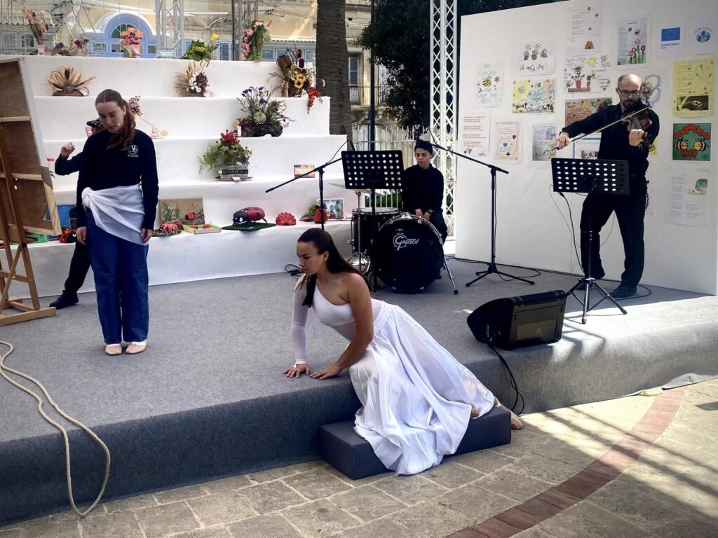 On Saturday, 3rd May 2025, students and educators from the MAVC Gozo Visual and Performing Arts School proudly represented the school at the Spring Festival in Villa Rundle Gardens, Victoria, as part of the Europe Day 2025 celebrations. This vibrant festival, celebrating creativity and collaboration, provided the perfect platform for the school to showcase its talent and multidisciplinary approach through the powerful presentation of “The Weight We Leave Behind.”