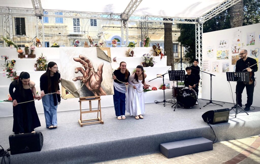 This original production was a compelling fusion of art, music, drama, and dance, featuring students: Kayleen Mercieca, Katlyn Vella, Ġuzeppi Grech, Gabriel Barbara, Norah Vella, Nina Debono Curmi, and Giorgio Anici Camilleri. The performance was brought to life through the dedicated efforts of a team of educators; original script and direction by Jamie Camilleri, choreography by Christabel Bajada, original music composed by Pierre Louis Attard, and visual design by Denis Mompalao. Together, they created a moving narrative that engaged the audience deeply, demonstrating how the arts can convey powerful emotion and social reflection.